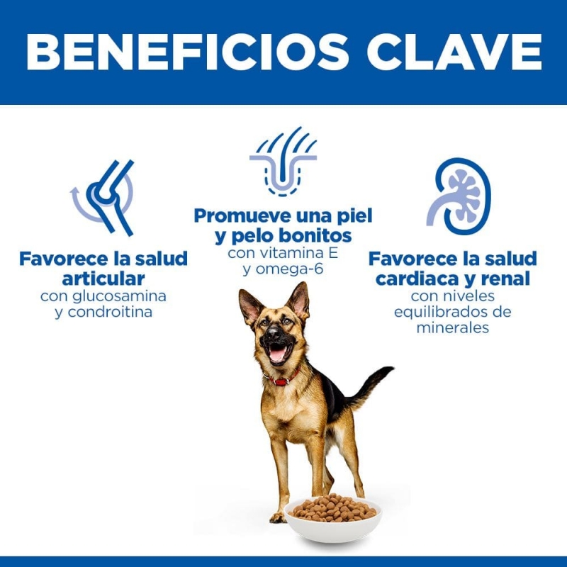 Hill's Science Plan Large Breed alimento para perros mayores es un alimento completo para perros grandes o gigantes (más de 25 kg) a partir de los 6 años de edad.