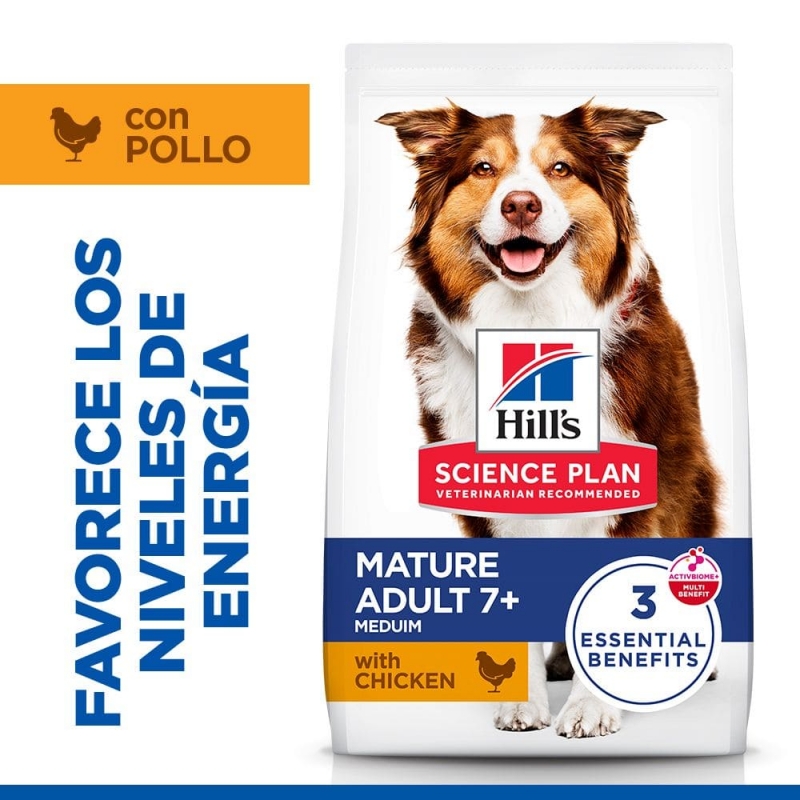 Hill's™ Science Plan™ MEDIUM ALIMENTO PARA PERROS MAYORES con POLLO es una opción ideal para perros adultos de más de 7 años. Este alimento completo y seco ayuda a mantener la vitalidad y salud de los órganos vitales, proporcionando una nutrición fácil de digerir.