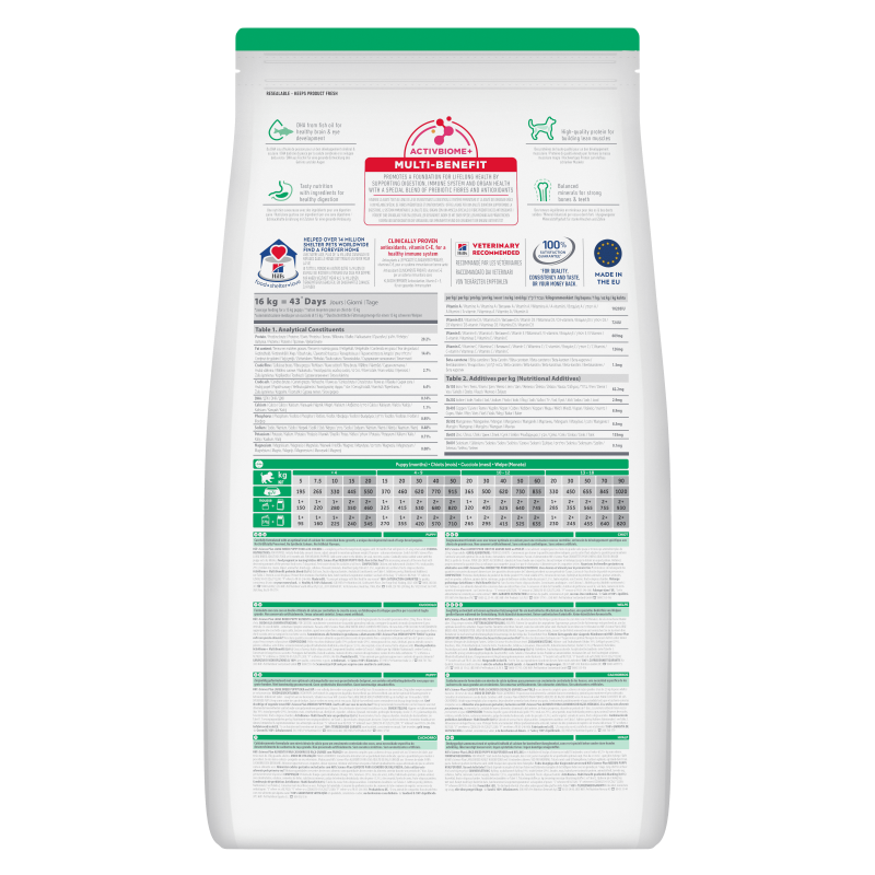 Hill's™ Science Plan™ LARGE BREED con Pollo es ideal para cachorros de razas grandes.