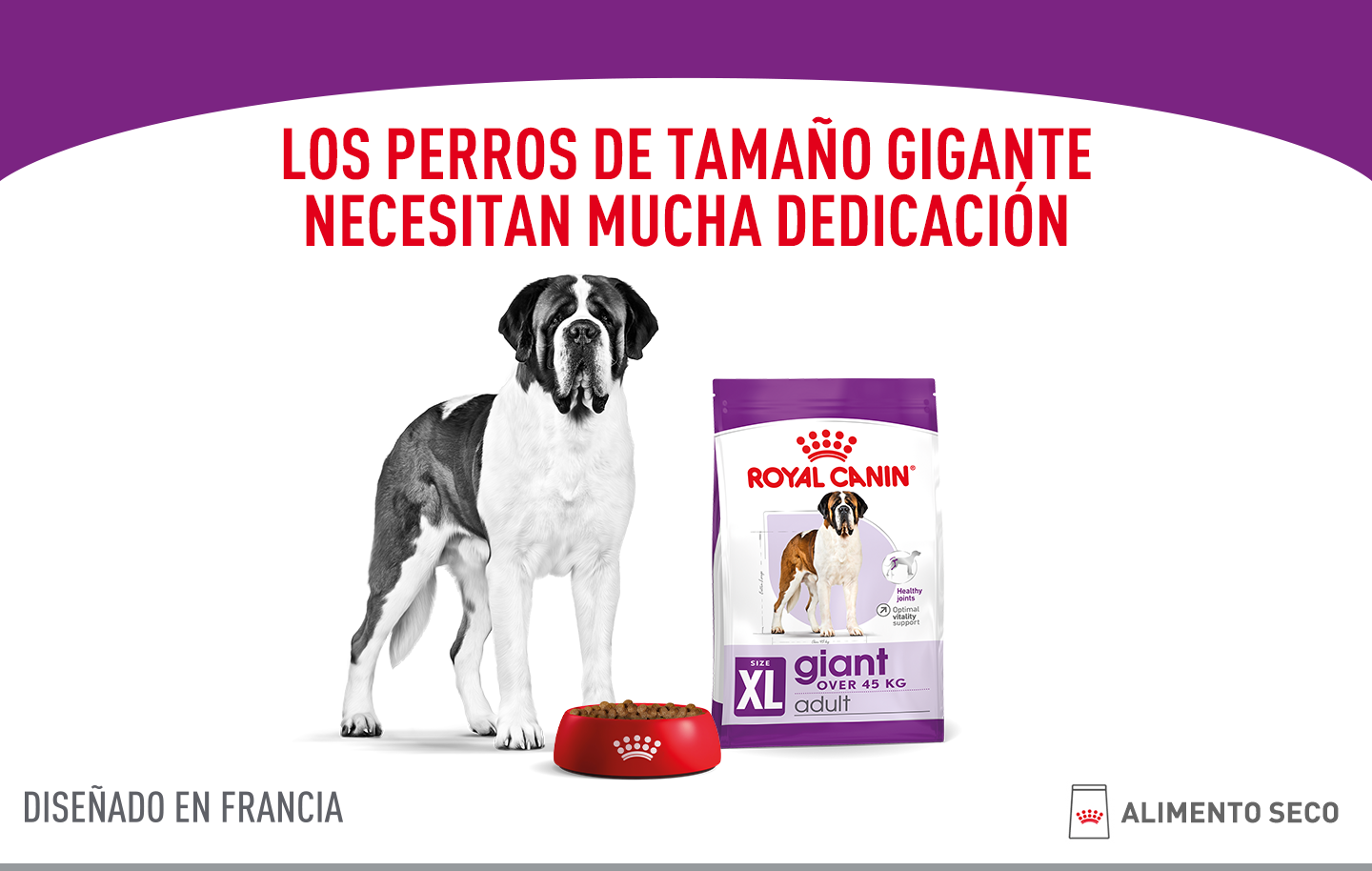 Giant Adult de ROYAL CANIN® es una comida diseñada para perros adultos con un peso de 45 kg o más, y ha sido especialmente desarrollada teniendo en cuenta las necesidades nutricionales de perros de razas gigantes como el tuyo. Dado su gran tamaño y peso corporal, es esencial que la alimentación de tu perro contribuya al mantenimiento óptimo de su salud osteoarticular. Por esta razón, Giant Adult de ROYAL CANIN® contiene glucosamina y condroitina, que son beneficiosas para el cuidado de sus huesos y articulaciones.