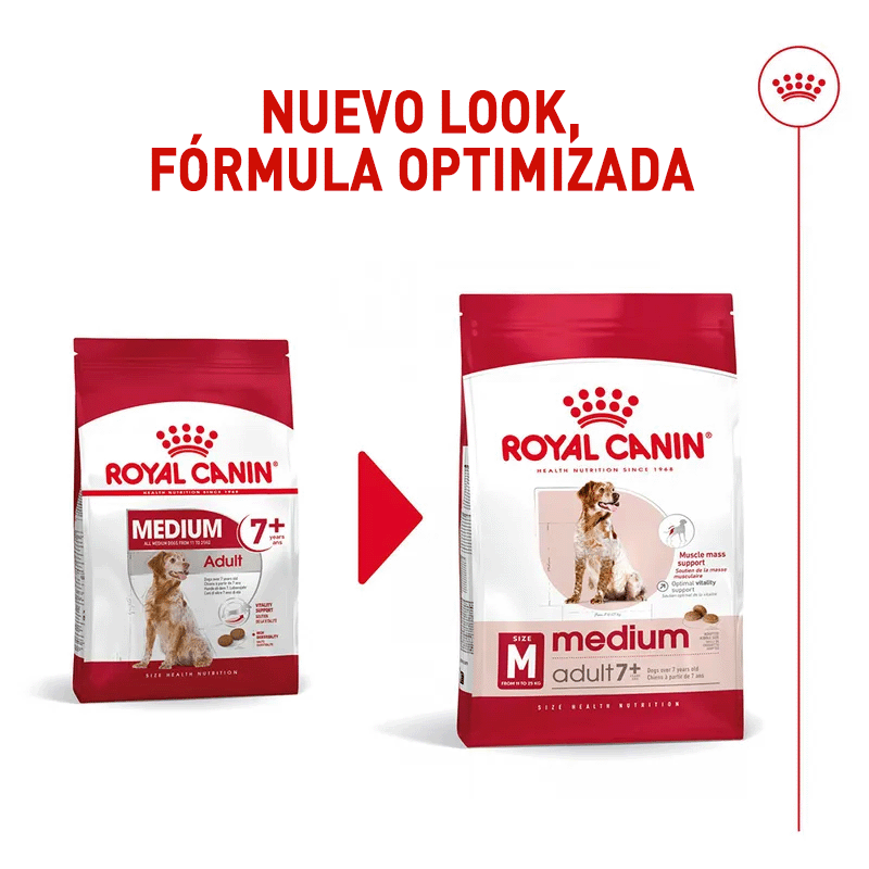 Medium Adult 7+ de ROYAL CANIN® es una opción ideal para perros de razas pequeñas que entran en la etapa de envejecimiento. Esta fórmula ha sido cuidadosamente elaborada para mantener la vitalidad durante este período de la vida.