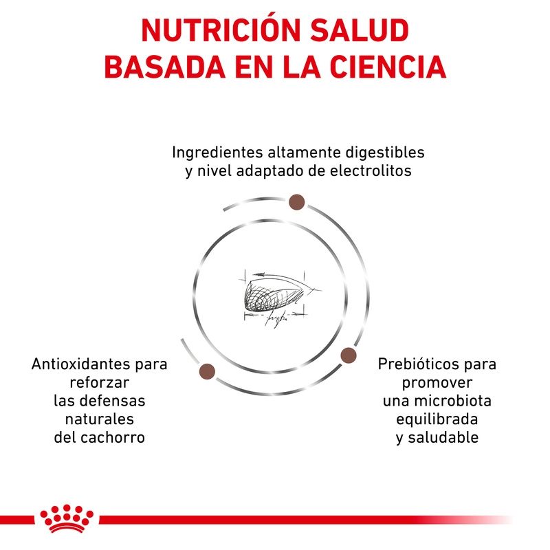 La receta incluye ingredientes altamente digestibles que facilitan la absorción de nutrientes en cachorros con el intestino comprometido. Además, su elevado contenido de electrolitos y nutrientes contribuye a compensar las pérdidas asociadas a diarreas o problemas gastrointestinales, ayudando a mantener la hidratación y el equilibrio interno.