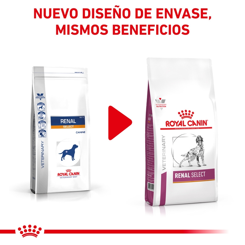 Royal Canin Veterinary Renal Select es un alimento dietético completo formulado para perros adultos con insuficiencia renal crónica o que necesitan un soporte específico de la función renal. Su receta ha sido desarrollada para reducir la carga de trabajo de los riñones y ofrecer una nutrición adaptada a las necesidades de estos perros.