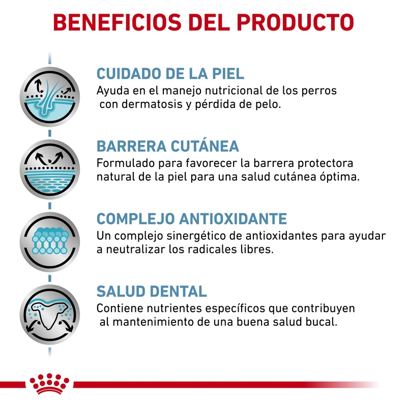 Pienso dietético para perros adultos de razas pequeñas diseñado para mejorar la salud de la piel y apoyar a perros con problemas dermatológicos y sensibilidad cutánea.