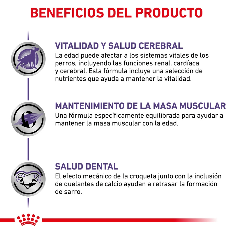 Este pienso está especialmente indicado para perros pequeños adultos mayores (peso inferior a 10 kg) que empiezan a mostrar los signos de la edad y necesitan un apoyo nutricional específico para la etapa madura.