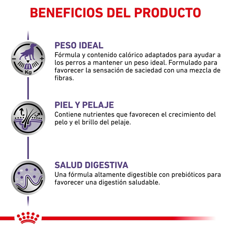 Royal Canin Veterinary Neutered Adult Medium Dog está formulado para perros adultos de raza mediana esterilizados (11-25 kg) que presentan tendencia a ganar peso y posible sensibilidad cutánea. Después de la castración, el gasto energético suele disminuir mientras aumenta el apetito, por lo que este alimento ayuda a mantener un peso corporal saludable sin renunciar a una nutrición completa y equilibrada.