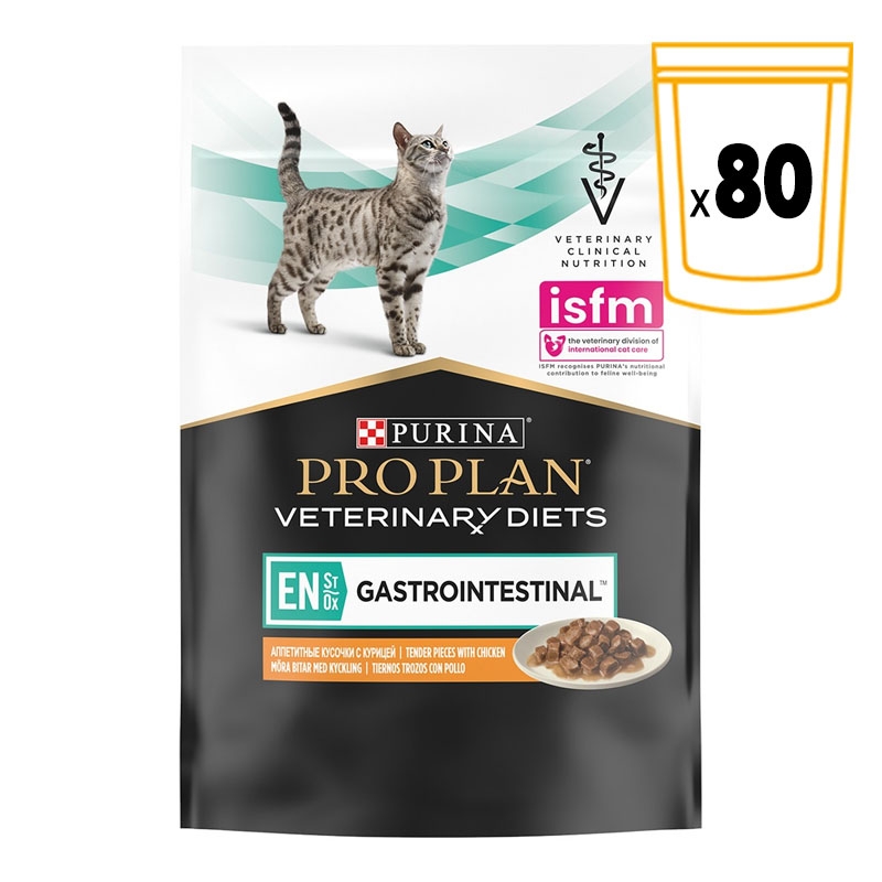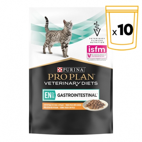 La comida húmeda Pro Plan Veterinary Diets EN Gastrointestinal está especialmente formulada para gatos adultos y gatitos que requieren una nutrición óptima durante la recuperación de trastornos de absorción intestinal. Este alimento completo en sobre es ideal para favorecer la recuperación nutricional y la convalecencia.