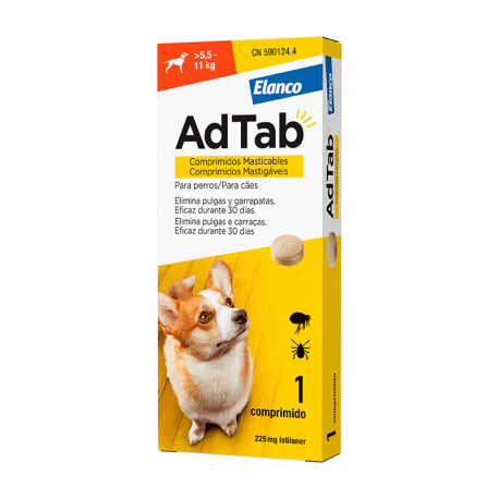 | ADTAB 225 mg COMPRIMIDOS MASTIGÁVEIS PARA CÃES (>5,5–11 kg), Embalagem com 1 blister de 1 comprimido | Cães de >5,5–11 kg | 225 mg Lotilaner |