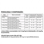 - Não recomendado para cães com hipersensibilidade aos ingredientes ativos ou ao excipiente.