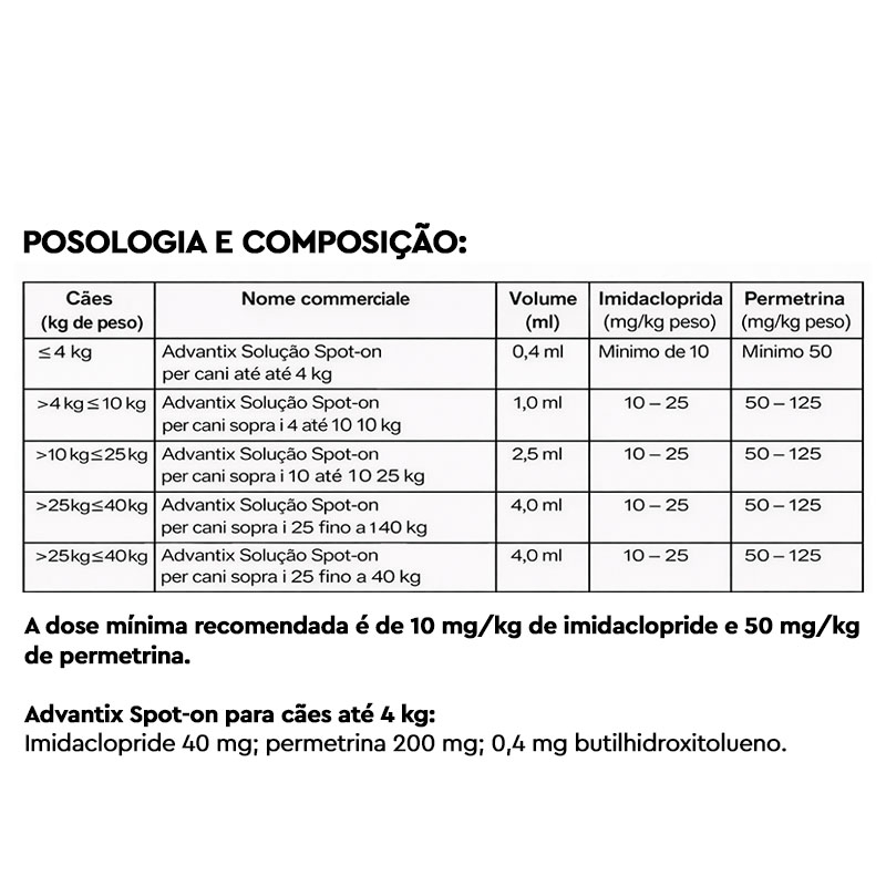 Também disponível para outras categorias de peso: Advantix 4-10 kg para cães pequenos e Advantix 10-25 kg para cães de porte médio.