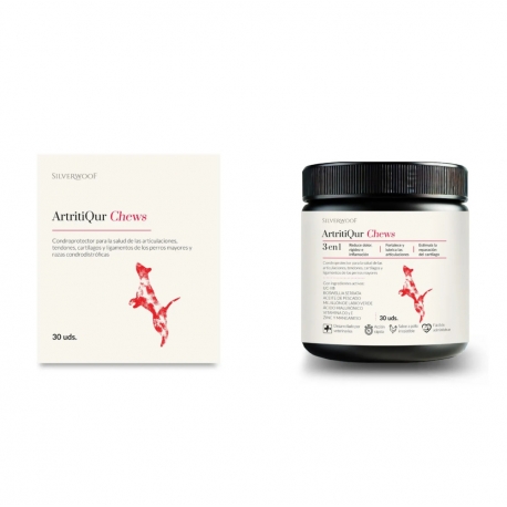 ArtritiQur Chews condroprotetor para cães é um inovador suplemento para articulações em formato de snacks articulares para cães, concebido para melhorar a mobilidade, reduzir a inflamação e favorecer o bem-estar diário do teu patudo. Disponível em formatos de 30 e 90 chews, combina ingredientes avançados como UC-II® (colagénio tipo II não desnaturado), Boswellia Serrata e Micro-PEA, oferecendo uma alternativa superior à glucosamina tradicional.