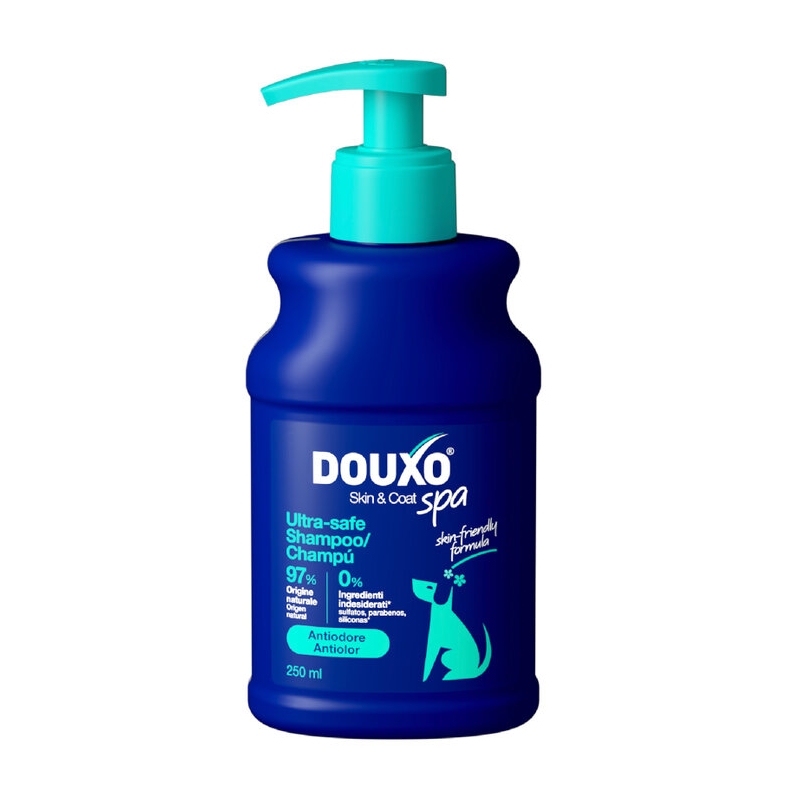 Douxo Spa Shampoo Anti-Odor é um shampoo suave para cães com pele sensível, desenvolvido para eliminar maus odores, reduzir excesso de oleosidade e deixar o pelo macio e brilhante.