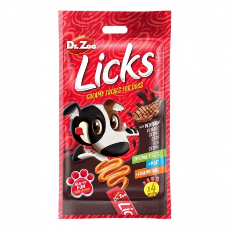 Um snack líquido para cães com veado, cremoso, natural e sem cereais, ideal como prémio saudável e fácil de administrar para cães de todas as idades.