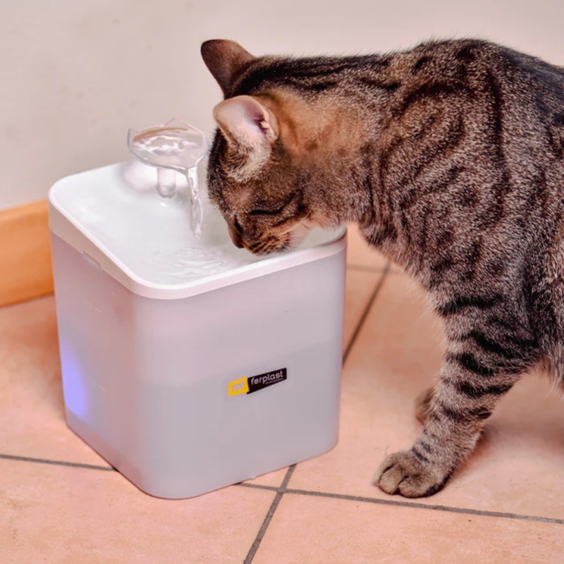 A Fonte Ferplast Ares LED é um bebedouro compacto e moderno para gatos e cães pequenos, com iluminação LED indicativa, filtro em 3 etapas e funcionamento seguro em baixa tensão, promovendo hidratação adequada.