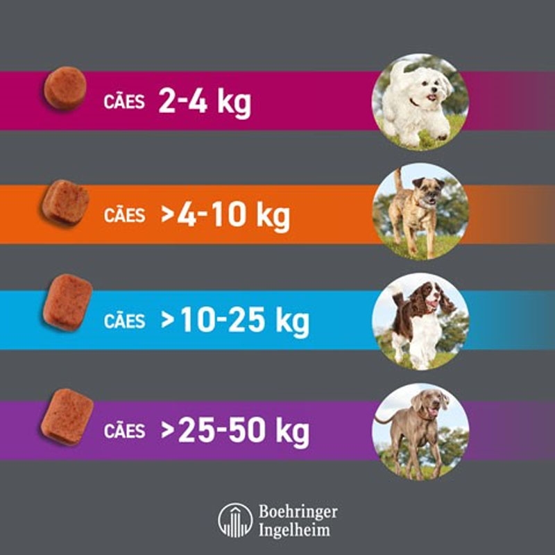 | FRONTPRO 68 mg COMPRIMIDOS MASTIGÁVEIS PARA CÃES >10–25 kg | Cães de mais de 10–25 kg | 68 mg |