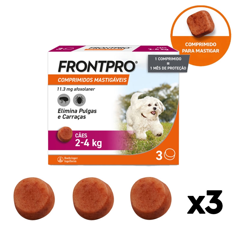 | FRONTPRO 11 mg COMPRIMIDOS MASTIGÁVEIS PARA CÃES 2–4 kg | Cães de 2–4 kg | 11 mg |