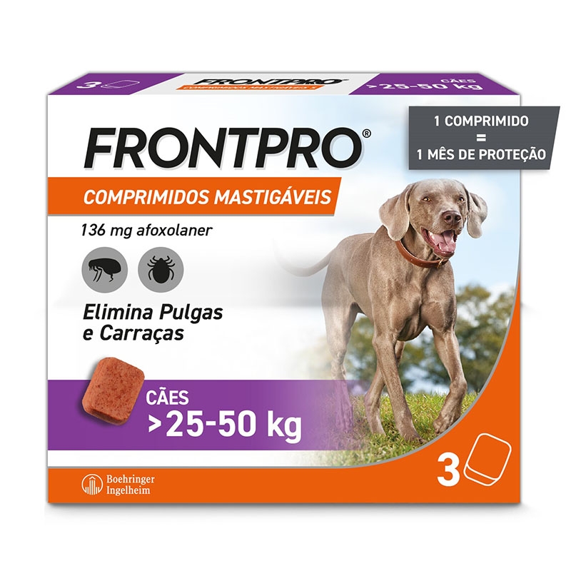 | FRONTPRO 136 mg COMPRIMIDOS MASTIGÁVEIS PARA CÃES >25–50 kg | Cães de mais de 25–50 kg | 136 mg |
