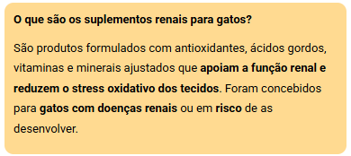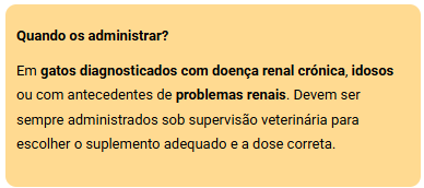 Em gatos diagnosticados com doença renal crónica, idosos ou com antecedentes de problemas renais. Devem ser sempre administrados sob supervisão veterinária para escolher o suplemento adequado e a dose correta.