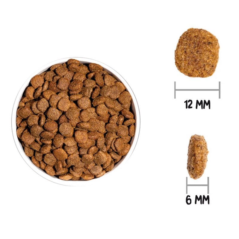 A receita inclui 30% de carne fresca de peru, 18% de carne desidratada e uma variedade de ingredientes integrais como batata-doce, arroz e aveia, além de frutas e legumes como mirtilos, maçã, cenouras e brócolis. Não contém trigo, milho ou soja, o que favorece uma digestão ótima e reduz as intolerâncias alimentares. Além disso, não contém conservantes nem corantes artificiais, usando antioxidantes naturais para sua conservação.