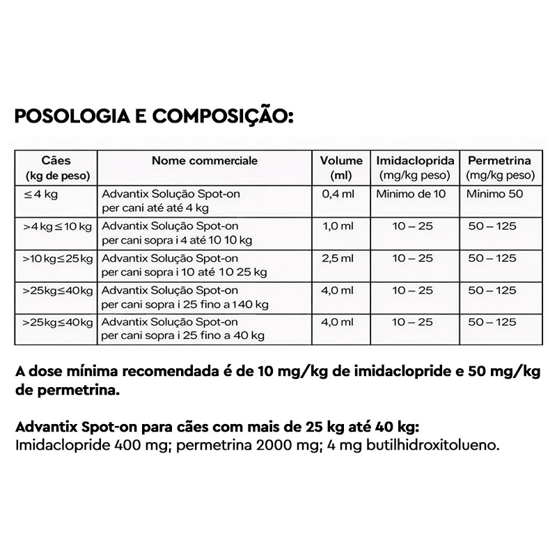 | Peso animal | 25-40, +45 |
