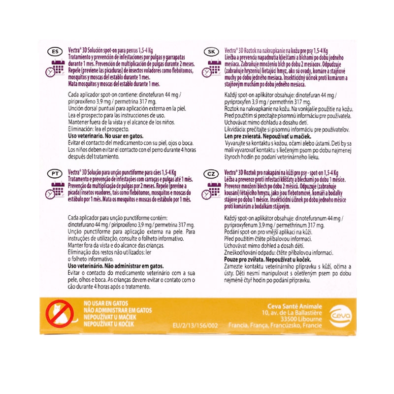 | Tipo de parasita | Carrapatos, Mosca, Mosquito, Pulgas, Larvas |