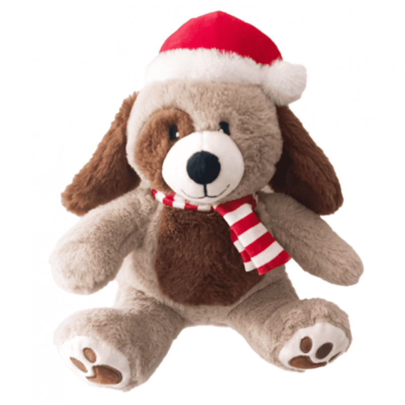 Pelúcia de Natal para cães com som, de poliéster + EVA (28×24×12 cm), macio, resistente e fácil de agarrar, perfeito para brincadeira em casa e entretenimento prolongado.