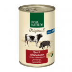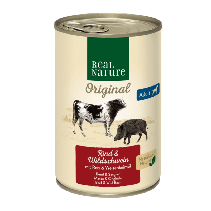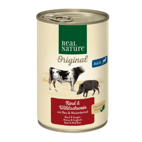 A receita de Carne de Vaca e Javali de Real Nature é uma opção deliciosa e nutritiva para cães que apreciam uma dieta rica em carnes de alta qualidade. Com 42% de carne de vaca e 26% de carne de javali, esta receita fornece proteínas essenciais para a saúde muscular e geral do seu cão. Acompanhada de arroz branco e óleos naturais, esta comida húmida oferece uma digestão ideal, além de um sabor que fará seu cão pedir mais.