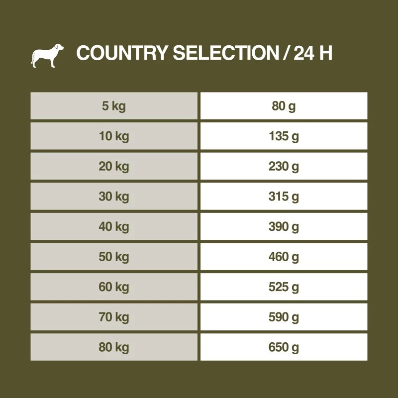 Proteína de cordeiro (32%), carne fresca de cordeiro (25%), flocos de batata (14%), farinha de batata (10%), gordura de cordeiro (8%), ervilhas (4%), maçãs (3%), levedura de cerveja (1%), cenouras (1%), espinafres (1%), óleo de linhaça (0,5%), glucosamina (0,03%), sulfato de condroitina (0,02%), manano-oligossacarídeos (0,02%), frutooligossacarídeos (0,01%), yucca schidigera (0,01%), arandos vermelhos (0,005%), alecrim (0,004%), cascas de psyllium (0,002%), algas (Ascophyllum nodosum, 0,002%), tomilho (0,001%), hortelã (0,001%), dente-de-leão (0,001%), salsa (0,001%).