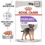 Royal Canin Sterilised é uma comida completa para cães adultos esterilizados a partir dos 10 meses de idade com tendência ao aumento de peso. Em delicioso patê.