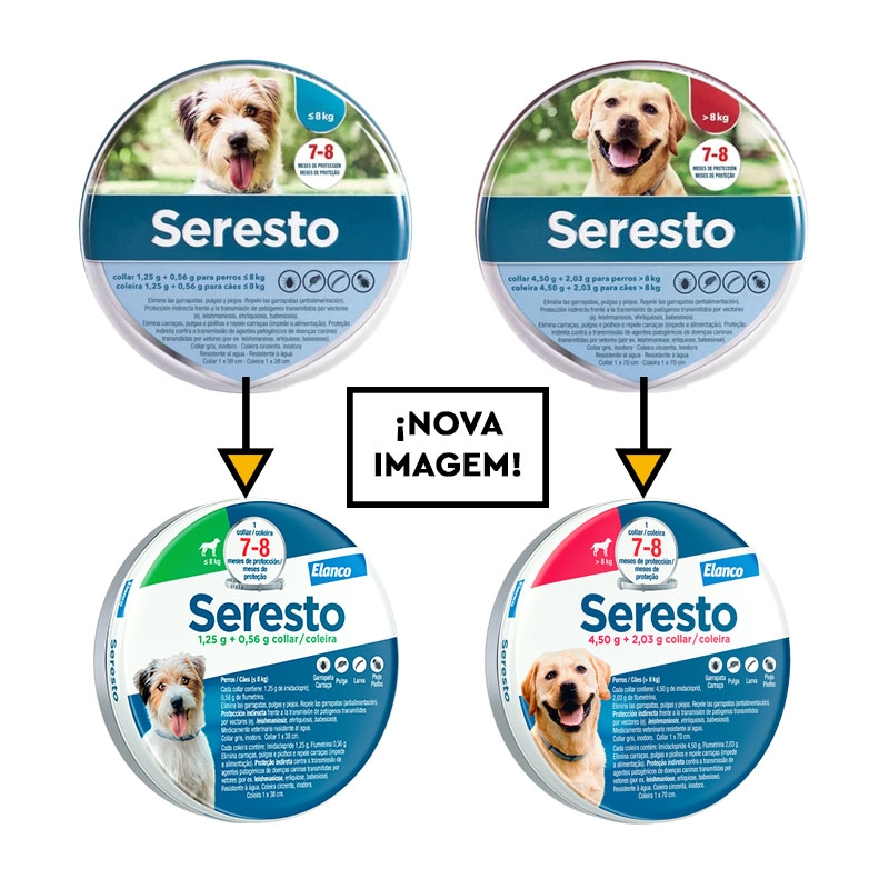 | SERESTO 1,25 g + 0,56 g COLEIRA PARA CÃES <8 kg | Raças pequenas e médias | 1,25 g + 0,56 g |