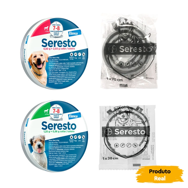 Seresto contém dois princípios ativos: imidacloprida, que elimina larvas e pulgas, e flumetrina, que repele e elimina carrapatos. É o único produto no mercado que combina esses dois princípios ativos.