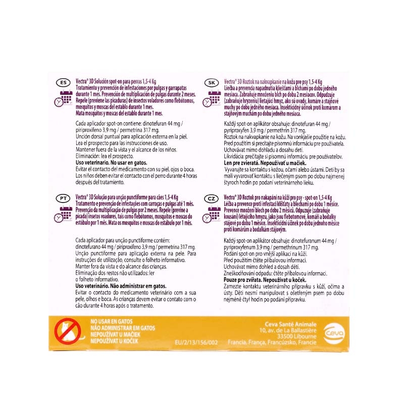 | VECTRA 3D SOLUÇÃO SPOT-ON PARA CÃES DE 1,5 A 4 kg | 1,5 – 4 kg |