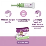 Esta solução age quando os parasitas entram em contato com a pele e o pelo do felino, impedindo que possam picar e se alimentar de seu sangue. Com uma aplicação que dura o mês todo, é adequada para gatinhos a partir de 7 semanas de idade ou com mais de 0,6 kg.