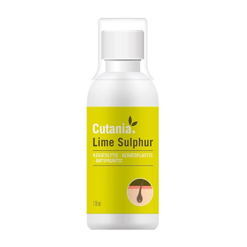 O VetNova Cutania Lime Sulphur é uma solução concentrada de enxofre calcinado para cães e gatos, com ação antisséptica e antifúngica contra dermatites, sarna e infecções fúngicas.