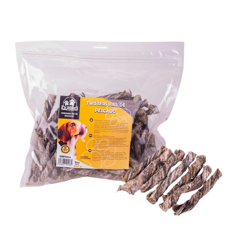 Snack natural de piel de pescado para perros, ideal como premio sabroso y complemento ocasional dentro de una alimentación equilibrada.