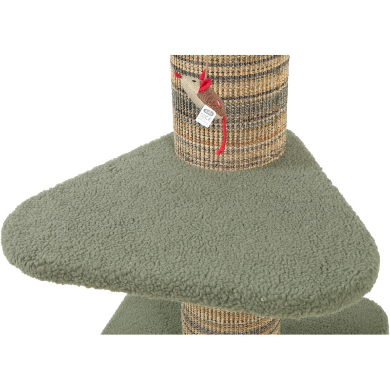 Este árbol rascador incorpora un poste de gran diámetro (17 cm), ideal para que el gato pueda afilar sus uñas de forma natural y estirarse completamente, ayudando a liberar estrés y a proteger los muebles del hogar. Además, incluye un ratón de juego que estimula el instinto de caza y mantiene al gato activo.