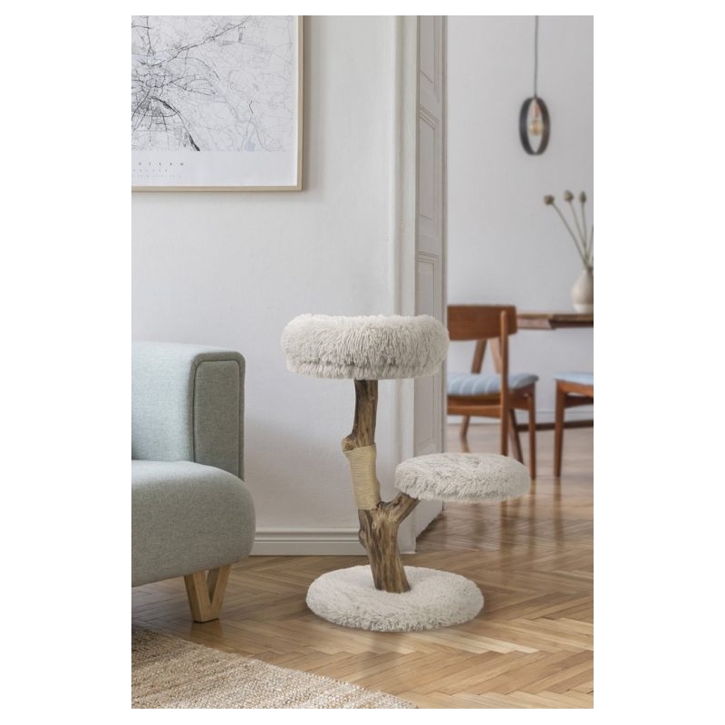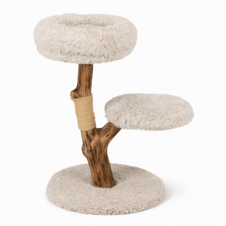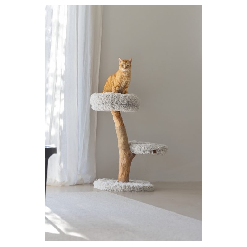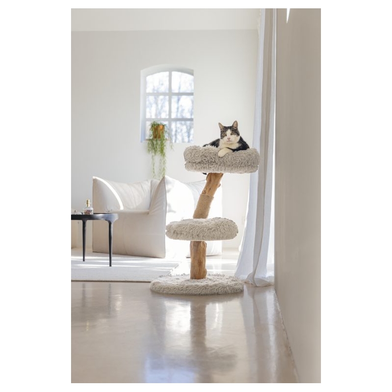 El árbol rascador Zora está fabricado con madera natural y tejido de felpa, lo que le aporta resistencia, estabilidad y un tacto confortable. Al tratarse de madera natural, cada unidad es única, por lo que puede presentar ligeras variaciones respecto a las imágenes, reforzando su carácter auténtico.