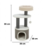 Rascador árbol para gatos en color beige, con poste de yute, cueva con sisal y plataforma acolchada con cama extraíble, ideal para rascar y descansar con comodidad.