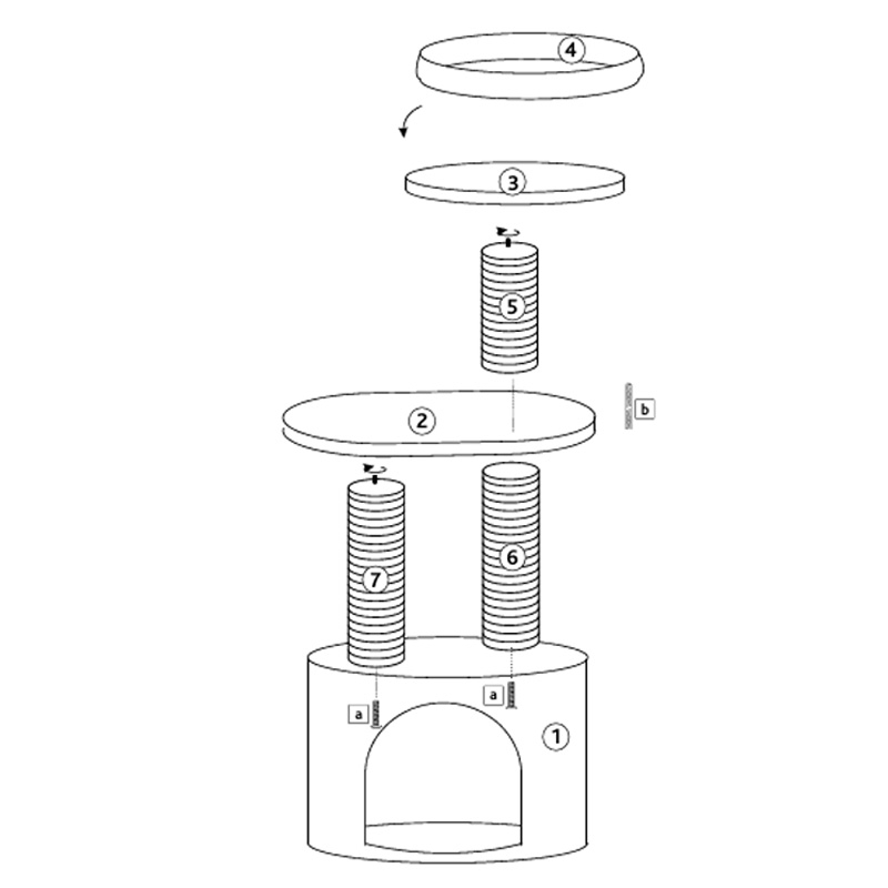 El rascador Marco está fabricado con poste revestido de yute y superficies de felpa de poliéster, materiales resistentes y agradables al tacto que fomentan el uso diario. Con su altura de 85 cm y una base de ø 38 cm, ofrece estabilidad y un punto elevado desde el que el gato puede observar su entorno con tranquilidad.