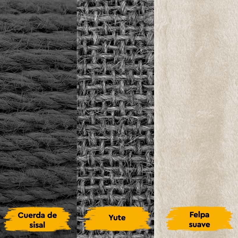 En la parte inferior incorpora una cueva cerrada que ofrece un refugio tranquilo y protegido, perfecta para momentos de descanso profundo. La cueva incluye una superficie rascadora de sisal, permitiendo al gato afilar sus uñas de forma natural incluso dentro del espacio de descanso.