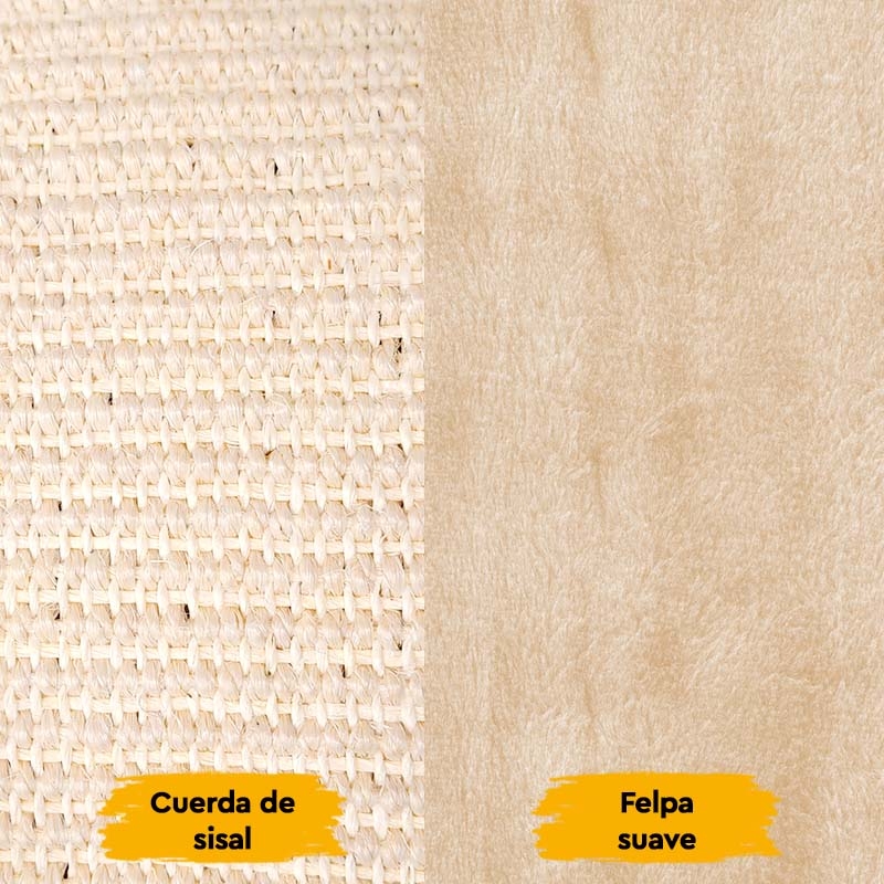 Este rascador incorpora una cueva cerrada, ideal para que el gato pueda relajarse, esconderse y descansar con una agradable sensación de protección. Además, cuenta con un cilindro que amplía las opciones de descanso y juego, ofreciendo un espacio adicional donde el gato puede acomodarse cómodamente.