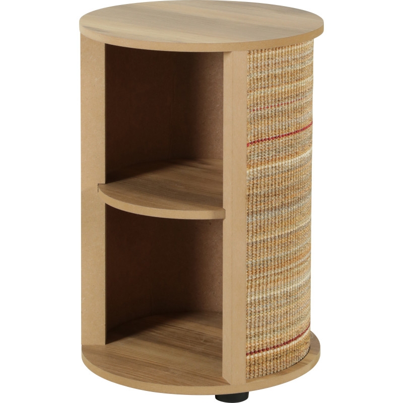 Rascador 3 en 1 para gatos en color beige, con alfombrilla de sisal y diseño ovalado, compacto y decorativo, ideal para rascar, jugar y descansar.
