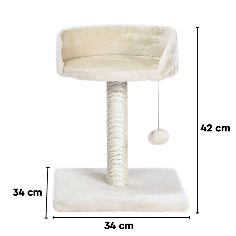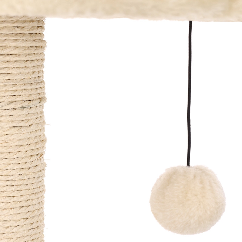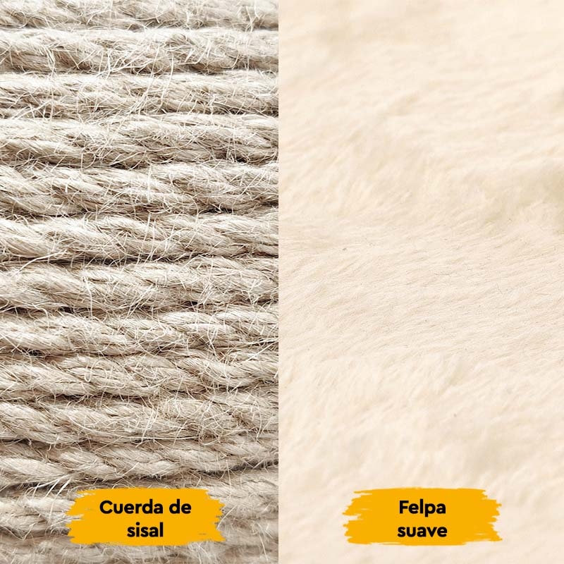 Cuenta con un poste revestido de sisal, ideal para que el gato pueda afilar sus uñas de forma natural, ayudando a liberar estrés y a proteger muebles y superficies del hogar. En la parte superior incorpora una pelota colgante que estimula el instinto de juego y mantiene al gato activo y entretenido.