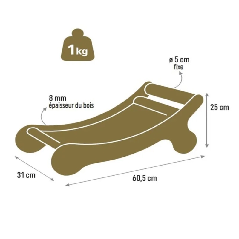 El rascador con hamaca Boréal Zolux es un mueble 2 en 1 que combina zona de descanso y superficie de rascado, creando un auténtico rincón de bienestar para el gato. Su diseño tipo chaise longue ofrece un espacio cómodo y relajante donde tu compañero puede descansar mientras satisface su instinto natural de afilarse las uñas.
