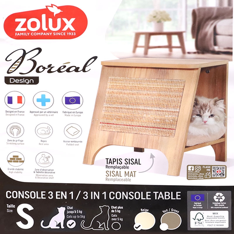 El rascador para gatos mesa consola Boréal Zolux es un mueble 3 en 1 que une diseño, confort y funcionalidad en una sola pieza elegante. Pensado para integrarse de forma natural en el hogar, este rascador con formato de consola ofrece al gato un espacio propio para rascar, descansar y relajarse, sin renunciar a la estética.