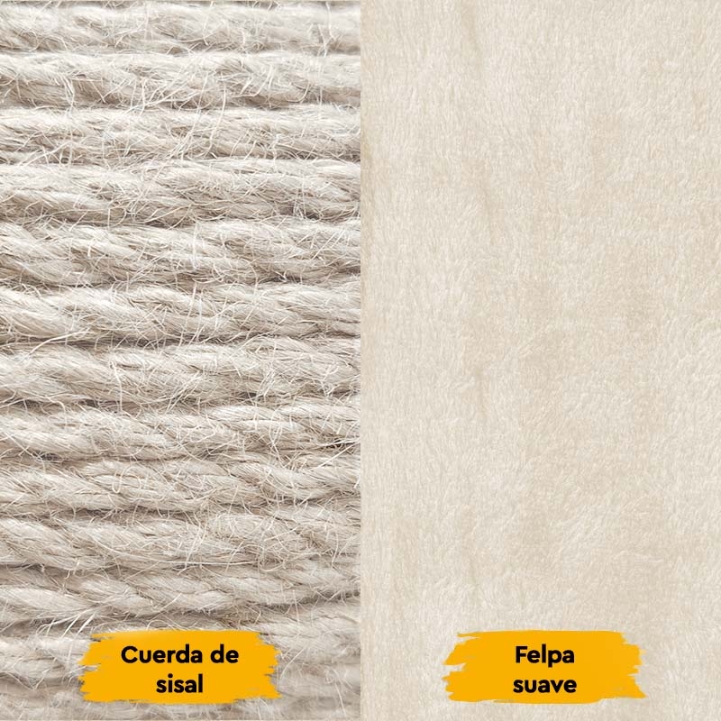 Este rascador tipo torre ofrece múltiples zonas diferenciadas que permiten al gato satisfacer sus instintos naturales de descanso, juego y exploración vertical. Incorpora una cama elevada mullida ideal para relajarse, una plataforma intermedia que facilita el movimiento entre niveles y una escalera de acceso cómoda, pensada para subir y bajar con facilidad.