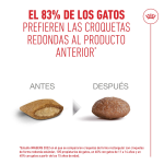 Sus croquetas optimizadas y fáciles de masticar cuentan con un alto nivel de aceptación, incluso en gatos senior con menor interés por la comida. La receta es energéticamente concentrada, lo que permite cubrir las necesidades nutricionales diarias con raciones más pequeñas, ayudando a mantener la vitalidad y el bienestar general.
