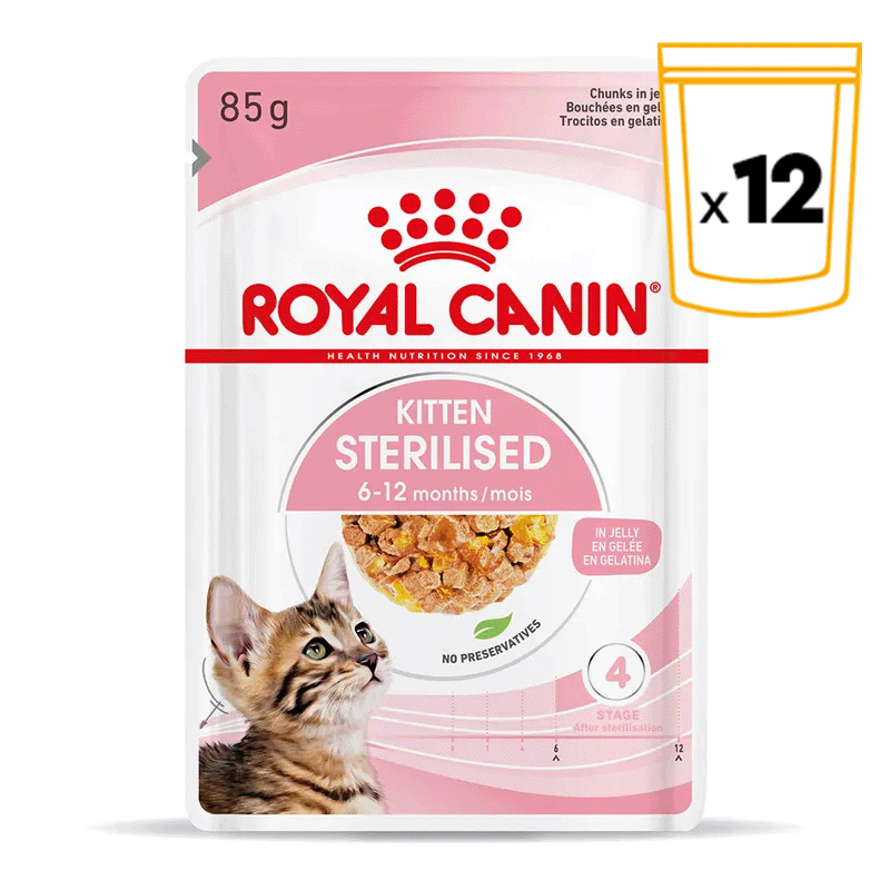 Comida húmeda para gatitos esterilizados de 6 a 12 meses, en finas láminas en gelatina adaptadas a su etapa de crecimiento. Con vitaminas C y E para reforzar la inmunidad y grasa ajustada para el control del peso tras la esterilización, sin comprometer su desarrollo.