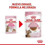 Comida húmeda para gatitos esterilizados de 6 a 12 meses, en bocaditos en salsa para una alta palatabilidad e hidratación diaria. Con vitaminas C y E para reforzar la inmunidad, grasa moderada para el control del peso y prebióticos para una digestión saludable.
