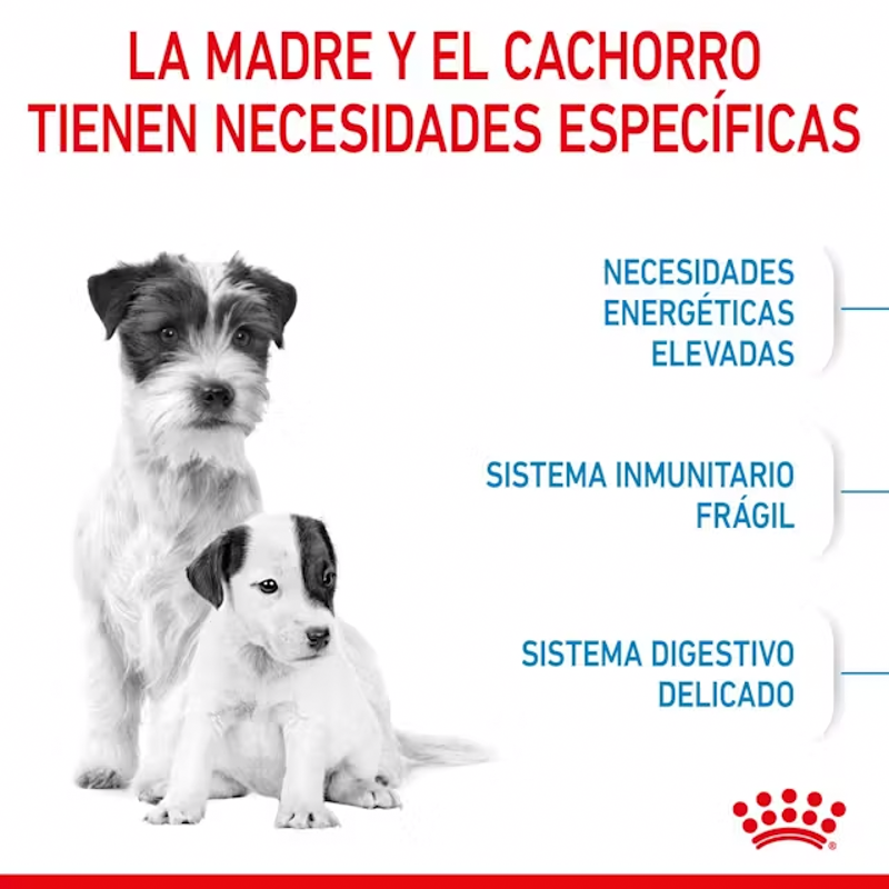 ROYAL CANIN® Mini Starter Mother & Babydog es una fórmula especialmente diseñada para satisfacer las necesidades nutricionales tanto de las madres lactantes como de sus cachorros en período de destete. Esta dieta es adecuada para perras adultas de razas pequeñas y cachorros de hasta 2 meses de edad, proporcionando una alta cantidad de energía para las madres y promoviendo un desarrollo saludable en los cachorros.